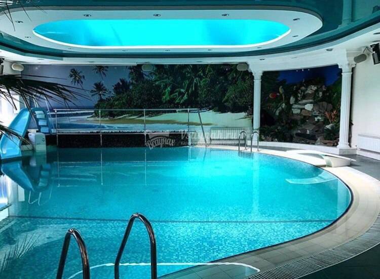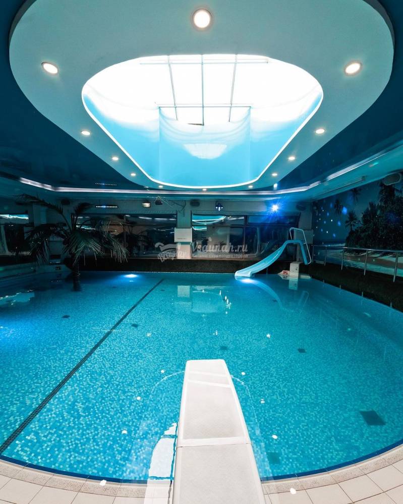Бассейн, Размеры (Ш x Д x Г), м: 6 x 8 x 3, Горки, Гейзер, Подсветка, Искусственная волна,